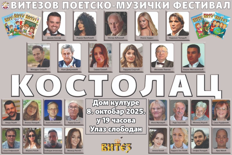 Centar za kulturu „Kostolac“ ugostiće u sredu, 8. oktobra, sa početkom u 19 časova, tradicionalni Vitezov poetsko-muzički festival, u okviru obeležavanja Dečje nedelje.