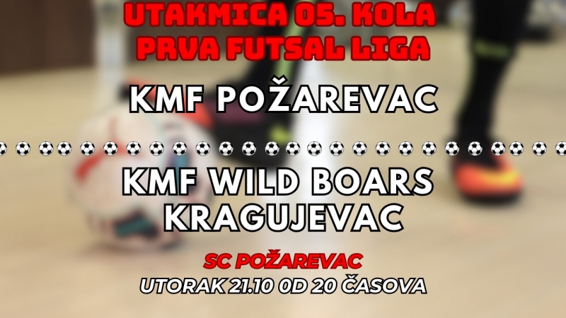 Večeras od 20 sati, u Velikoj sali Sportskog centra Požarevac, ekipa KMF Požarevac ugostiće tim Wild Boars iz Kragujevca u okviru 5. kola Prve futsal lige Srbije.