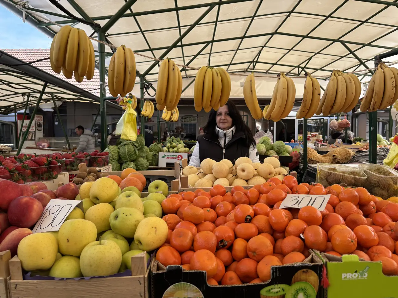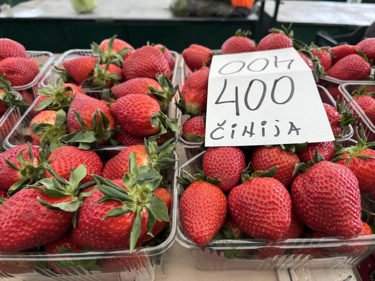 Na voćnim tezgama primetno je pojeftinjenje jagoda, koje se sada prodaju po 400 dinara. Narandže zadržavaju cenu od 250 dinara, jabuke se kreću od 130 do 180, dok su kruške 350, mandarine 300, limun 350, a banane 220 dinara po kilogramu.