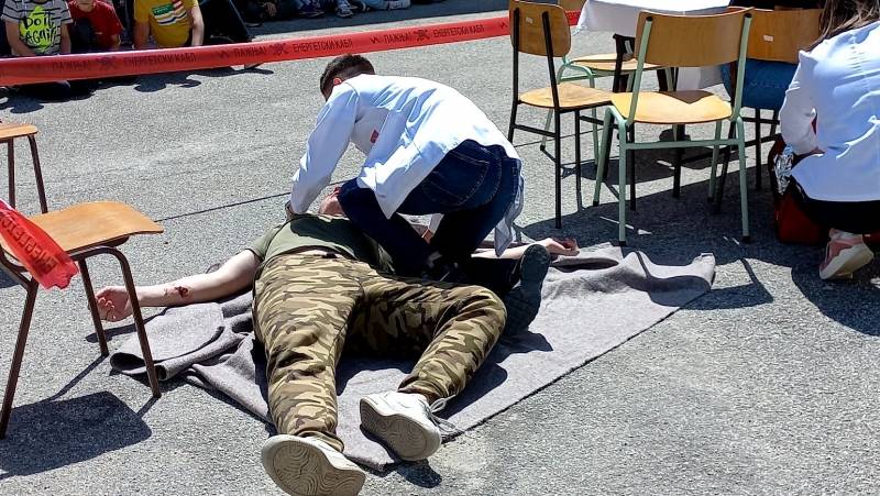 Danas je u dvorištu škole organizovana je pokazna vežba prve pomoći i realistički prikaz “Povreda na proslavi rođendana”.