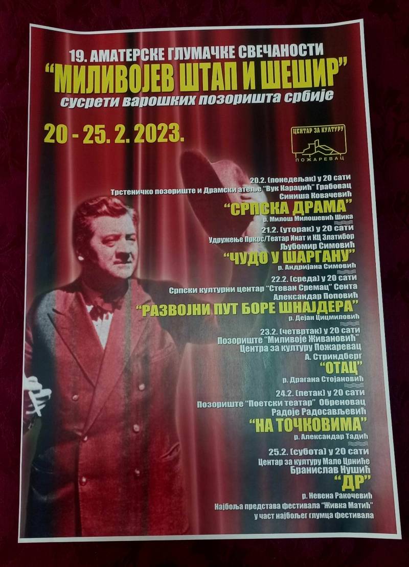XIX Amaterske glumačke svečanosti "Milivojev štap i šešir", počinju 20. i traju do 25. februara.