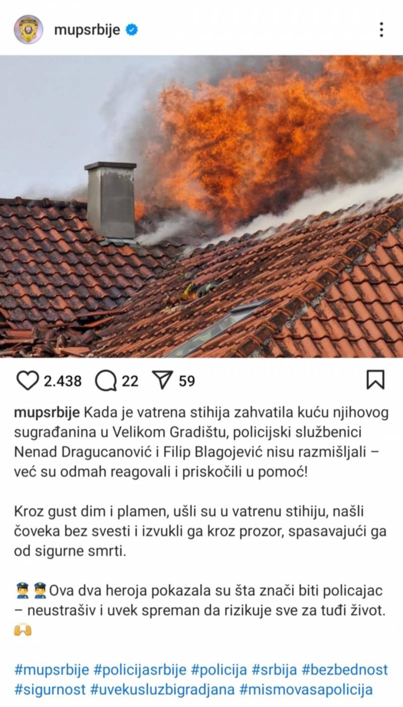 MUP Srbije objavio je ovu vest na Instagram stranici.