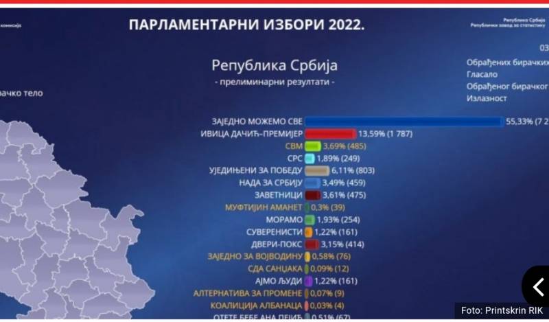 00.23 - Preliminarni rezultati parlamentarnih izbora na osnovu 77,1% obradjenog uzorka.