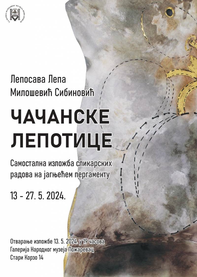 Izložba slikarskih radova na jagnjećem pergamentu pod nazivom “ČAČANSKE LEPOTICE” Leposave Milošević Sibinović biće otvorena u ponedeljak 13. maja u Galeriji Narodnog muzeja Požarevac.