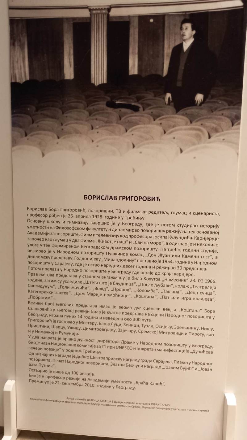 Izložba Dragice Gaćeše "Bora Grigorović" posvećena proslavljenom pozorišnom, televizijskom i filmskom reditelju, glumcu i scenaristi