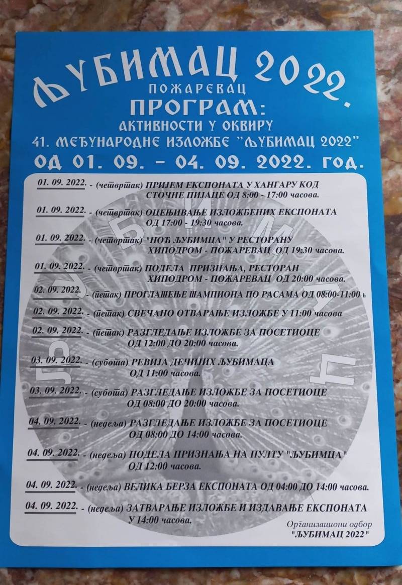 Nakon prijema sledi ocenjivanje eksponata i “Noć ljubimca “ u okviru koje će biti dodeljena priznanja prijateljima za dugogodišnju saradnju.