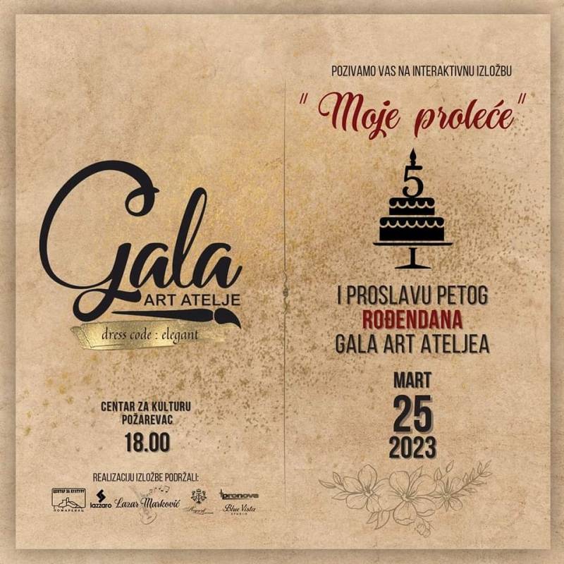 Povodom petog rođendana"Gala art ateljea" iz Požarevca, biće održana izložba radova dece od 7 do 14 godina, polaznika ateljea. Izložba nosi naziv "Moje proleće".
