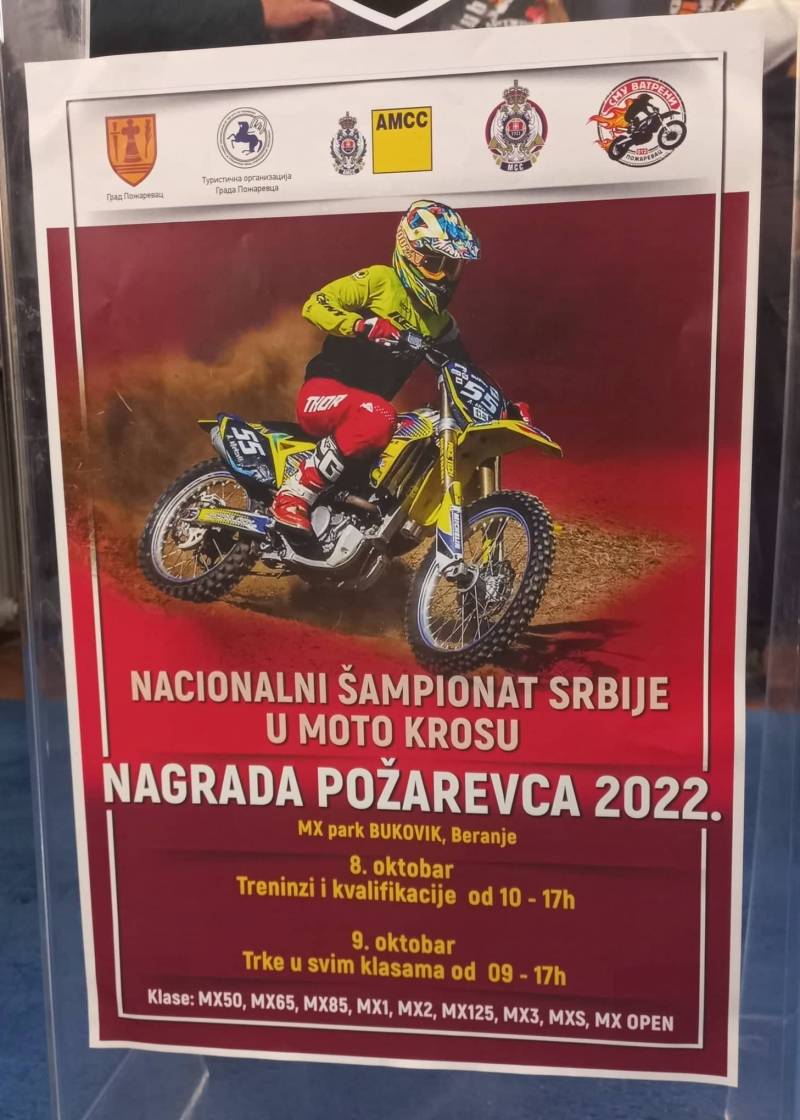 Nacionalni šampionat Srbije u moto krosu “Nagrada Požarevca 2022” u okviru Moto Saveza Srbije organizovaće se na stazi MX park Bukovik, u ataru sela Beranje u subotu i nedelju, 8. i 9. oktobra.