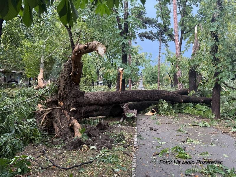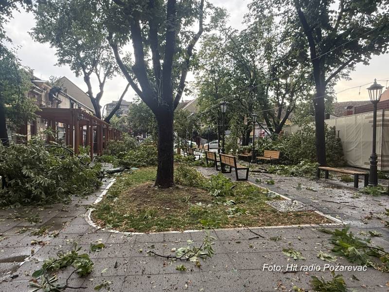 Gradski park u Požarevcu pretrpeo je velika oštećenja – brojna stabla su iščupana, a slična situacija je i u parku u Čikošu. Vetar je pokidao strujne kablove, pa su pojedini delovi grada ostali bez električne energije.