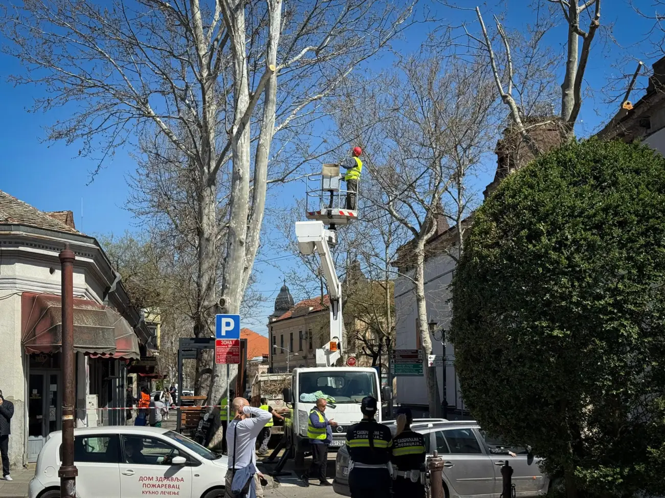 Orezivanje drveća u ulici Voje Dulića u Požarevcu