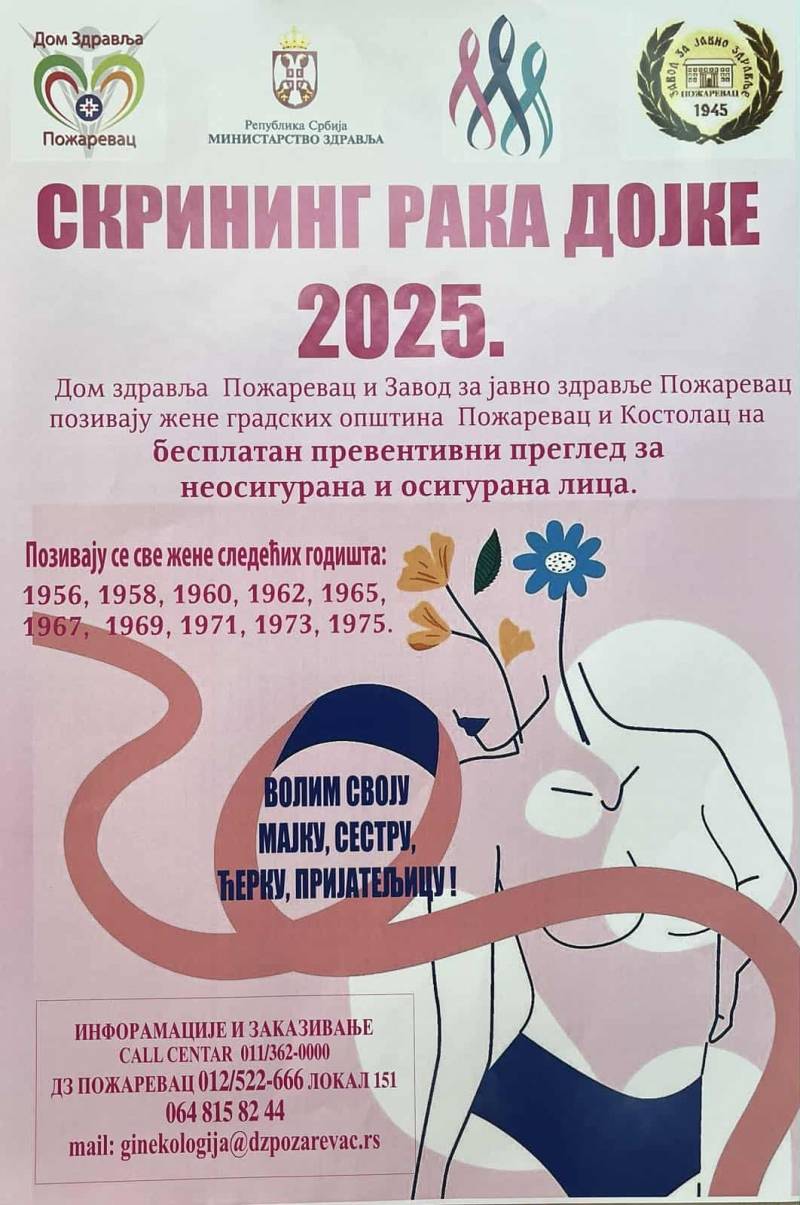Ginekolog iz Požarevca pozvala je sve žene da ne zanemaruju redovne kontrole, da obrate pažnju na promene u dojci i da se ne ustručavaju da se obrate lekaru ukoliko primete bilo kakve sumnjive simptome.