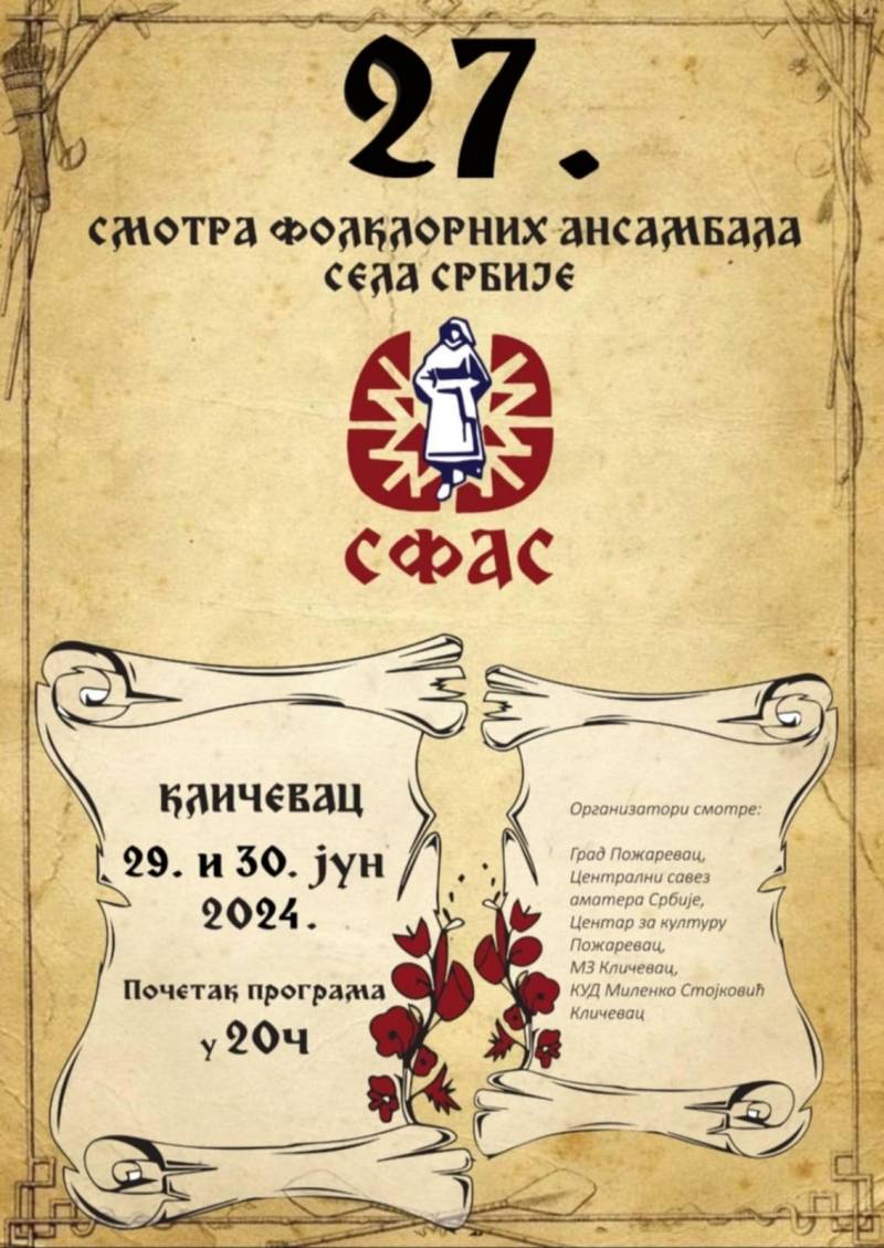 U susret jednom od najvažnijih događaja u folklornom svetu Srbije, Smotri folklornih ansambala sela Srbije (SFAS), Kličevac se sprema da ugosti kulturno-umetnička društva iz svih krajeva zemlje. Manifestacija, koja se ove godine održava 29. i 30. juna, okupiće prepoznatljive ansamble i umetnike koji će zajedno slaviti bogatstvo tradicionalne srpske kulture.