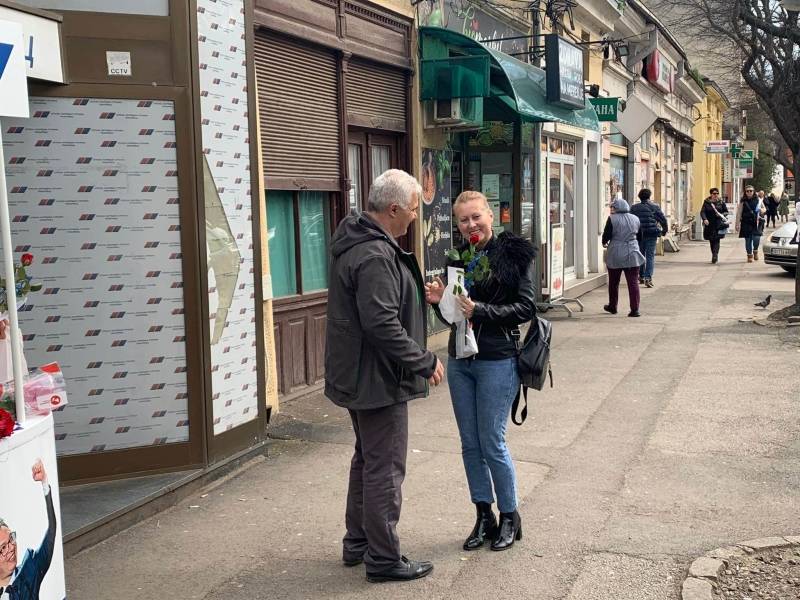 Povodom 8. marta, Međunarodnog praznika žena, članovi GrO SNS Požarevac u centru grada svim damama prolaznicama, delili su ruže.