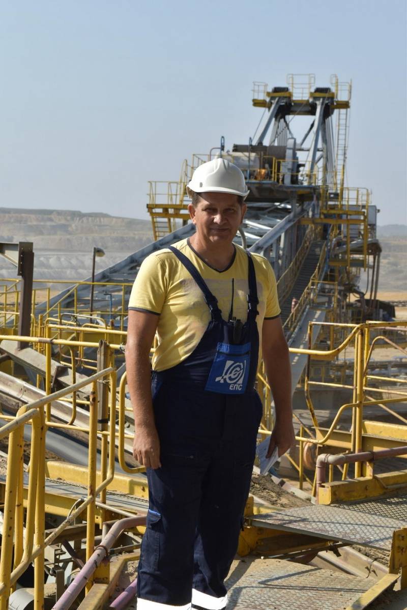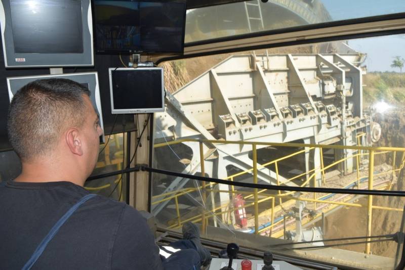 Na bageru 2000 zatičemo dežurne radnike elektro i mašinske službe, nastavljamo put do prvog bageriste. Za pultom je Nemanja Stojanović, mladić koji pomno prati rad radnog točka i transport materijala prijemnom trakom.