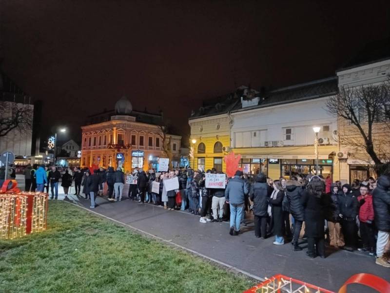 Okupljanje je započelo u gradskom parku, petnaestominutnim pomenom stradalima u Novom Sadu početkom novembra,pročitano je pismo podrške studenata koji su u blokadi, upućeno prosvetnim radnicima.