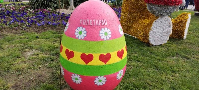 Na kružnom toku je pored prazničnih ukrasa koja su postavljena u petak 7. aprila, danas je postavljena i dekoracija koju su izradila deca i vaspitačice u vrtićima PU "Ljubica Vrebalov" Požarevac.