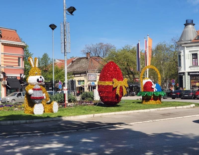 Na kružnom toku u centru Požarevca postavljena Uskršnja dekoracija.
