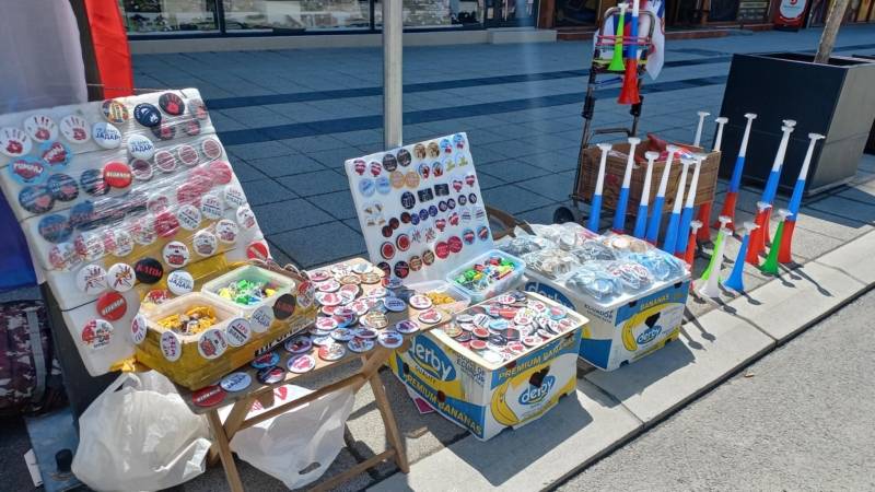 Veliki je broj prodavaca bedževa, truba, pištaljki koji su raspoređeni čitavom dužinom Tabačke čaršije.