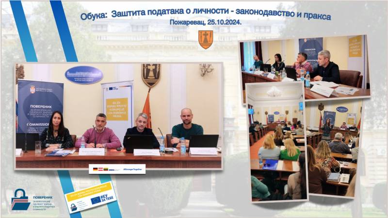U sali Skupštine grada Požarevca, u petak 25. oktobra sa početkom u 10 časova, održana je obuka lica za zaštitu podataka o ličnosti za sprovođenje Zakona o zaštiti podataka o ličnosti. Obuci su prisustvovali predstavnici Službe Poverenika, kao i ovlašćena lica za zaštitu podataka o ličnosti iz 34 javne ustanove sa područja grada Požarevca.